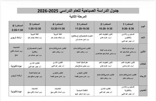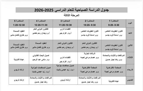 وتدعو الكلية جميع خريجيها الراغبين بالاستفادة من خدمات العيادة القانونية إلى مراجعة شعبة التسجيل للاطلاع على آلية الحجز والمواعيد المحددة ضمن الجدول الأسبوعي المعلن